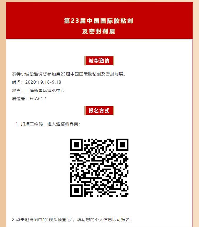 泰特爾在第23屆中國國際膠粘劑及密封劑展等您來!